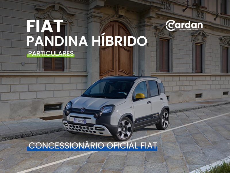 * O preço anunciado de 14.990€ é o Preço Recomendado de Venda ao Público com campanha de retoma FIAT PANDINA 1.0 Hybrid 65cv ICON, destinado a clientes Particulares, válido até 31/06/2026. Acresce despesas de legalização e transporte. Oferta limitada aos concessionários aderentes.Contrato de crédito automóvel novos para 36 meses / 30.000 km, exemplo para PANDINA 1.0 Hybrid 65cv ICON, PVPR de 19.343,00€, PVP campanha de 15.843,00€, inclui DLTP, entrada inicial de 3.650€, montante financiado de 12.193,00€, 35 prestações de 129€, prestação final de 9.732,45€, taxa fixa, TAN de 6,024% e TAEG de 10,2% para um MTIC de 15.277,60€. (Inclui comissão de abertura de contrato de 700€, de reconhecimento e envio da declaração de extinção de reserva de 75€ e 32,50€ de custo de extinção de reserva). Condições válidas até 31/03/2026, para clientes particulares. Financiado por Stellantis Financial Services, uma marca Santander Consumer Finance, S.A, Sucursal em Portugal (registado junto do BdP com o nº 0073). A FCA Portugal, S.A. registada no Banco de Portugal sob o nº 7205 como intermediário de crédito a título acessório, actua sem caracter de exclusividade. Informe-se no Santander Consumer Finance S.A. *Valor Final Garantido, condicionado ao cumprimento de condições. Limitado ao stock existente.Ciclo combinado WLTP: Consumos de combustível de 4,8 a 4,9 l/100km e emissões de CO2 de 108 a 110 g/km. Os valores reais de consumo e CO2 dependem de muitos fatores associados, como, a título exemplificativo, estilo de condução, percurso e equipamento do veículo.
