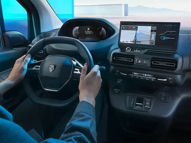 Para maior segurança e conforto, o e-Partner conta com tecnologias como Dynamic Surround View, aviso de fadiga do condutor, leitura de sinais de trânsito, assistência à manutenção de faixa, travagem automática de emergência com deteção de peões e ciclistas, e limitador de velocidade, oferecendo tranquilidade em todos os trajetos urbanos.